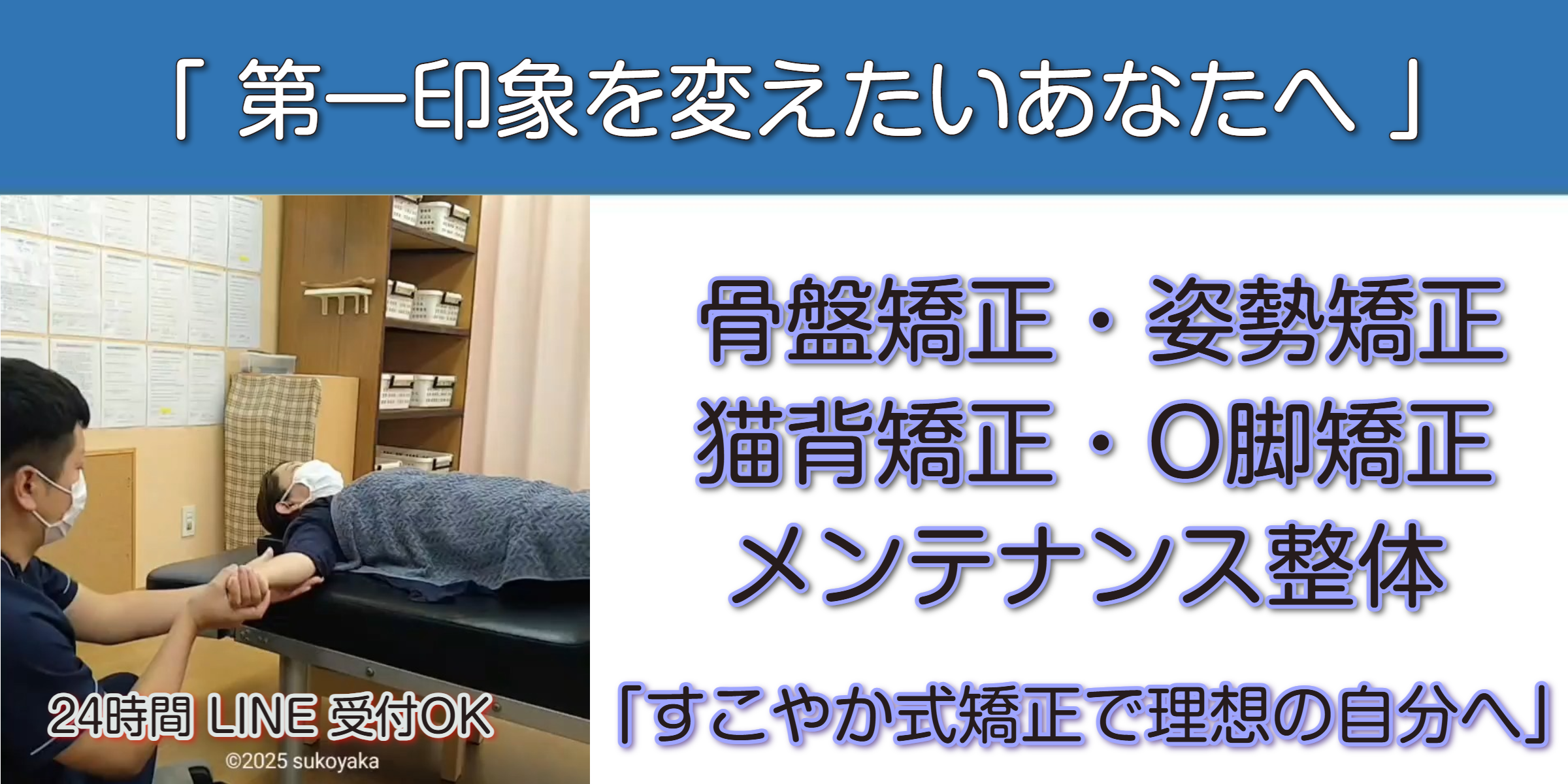 すこやか治療院では、その場しのぎではなく「ゆがみの原因」に着目した矯正で、不調の改善と再発しにくい体づくりをサポートします。